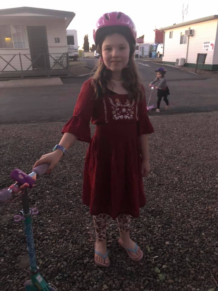 After a little kerfuffle with the site, we’re on. The kids disappeared on their scooters while we set up.