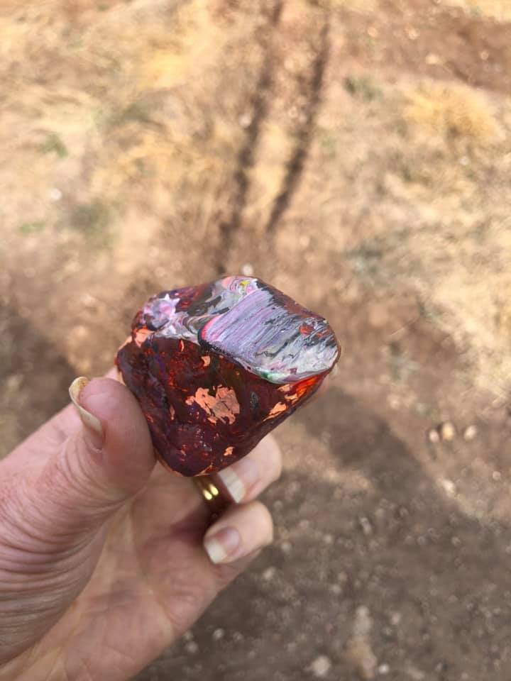 We excitedly made it to Lightning Ridge, a quick stop at the sign into town for photos and our first painted rock find of the trip.