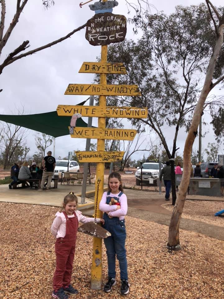 Then it was across the road to the arts and craft shop – they had some lovely opals for sale plus a range of arts and crafts. Some hilarious and some straight genius! The girls came out with card holders made from pool noodles (genius) and “Opal Bugs” made from golf balls and opal scraps.
