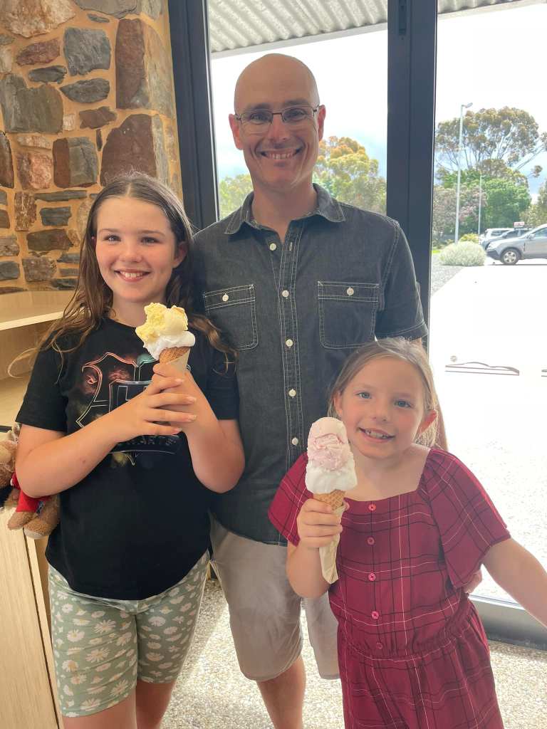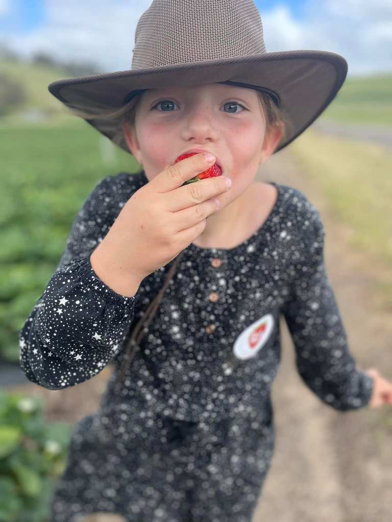 M: Monarto Safari Park, The tunnel of time (dinosaur mouth) at Wadlata Outback Centre, blood moon, quondong soda, Quorn, Cornish pasties, kids play areas at the Prince Albert pub at Gawler, Harry’s horses, table tennis and putt putt at Tailem Bend, all the chocolate factory’s, Ice cream stops, oh and the strawberry picking!