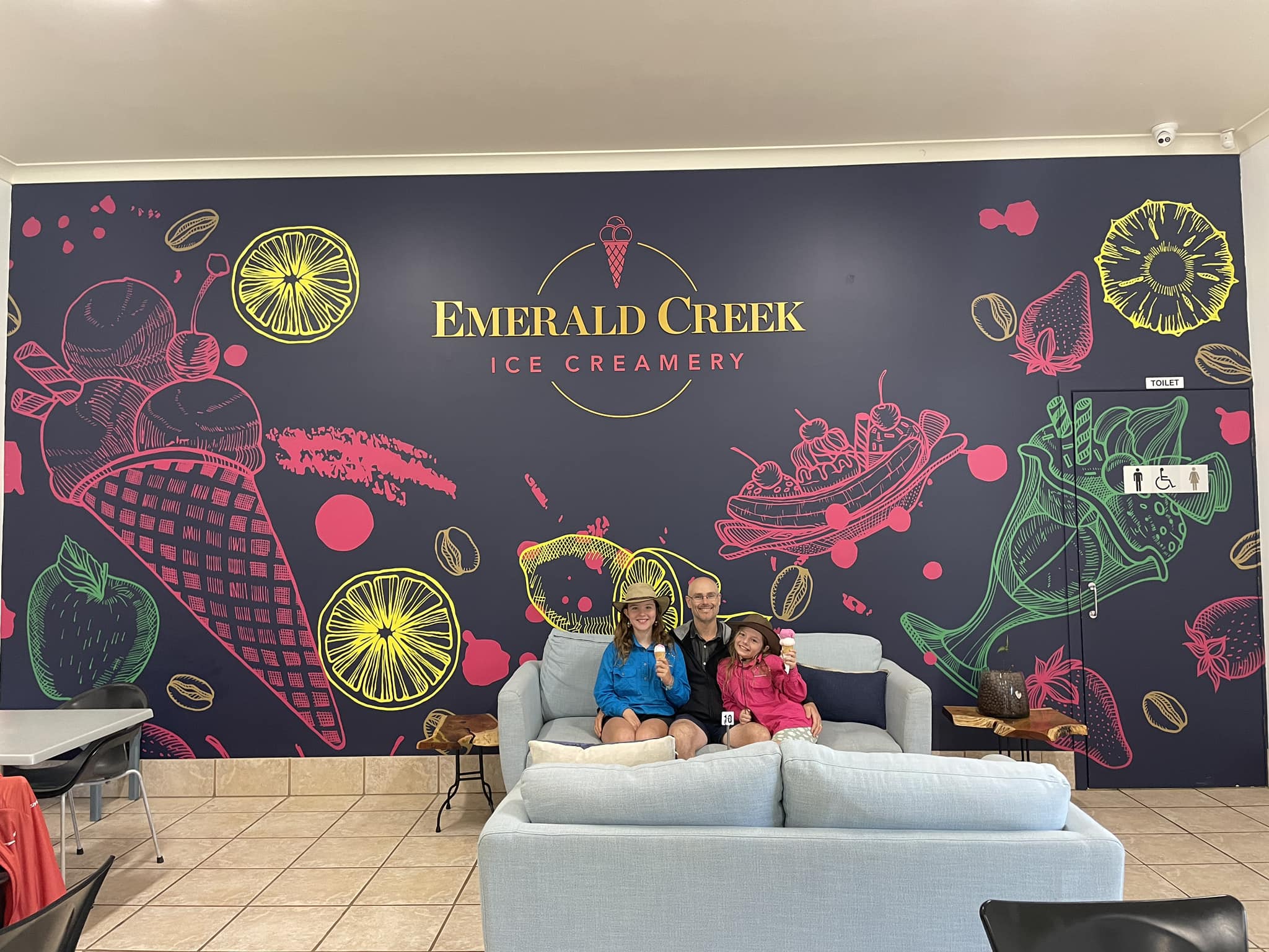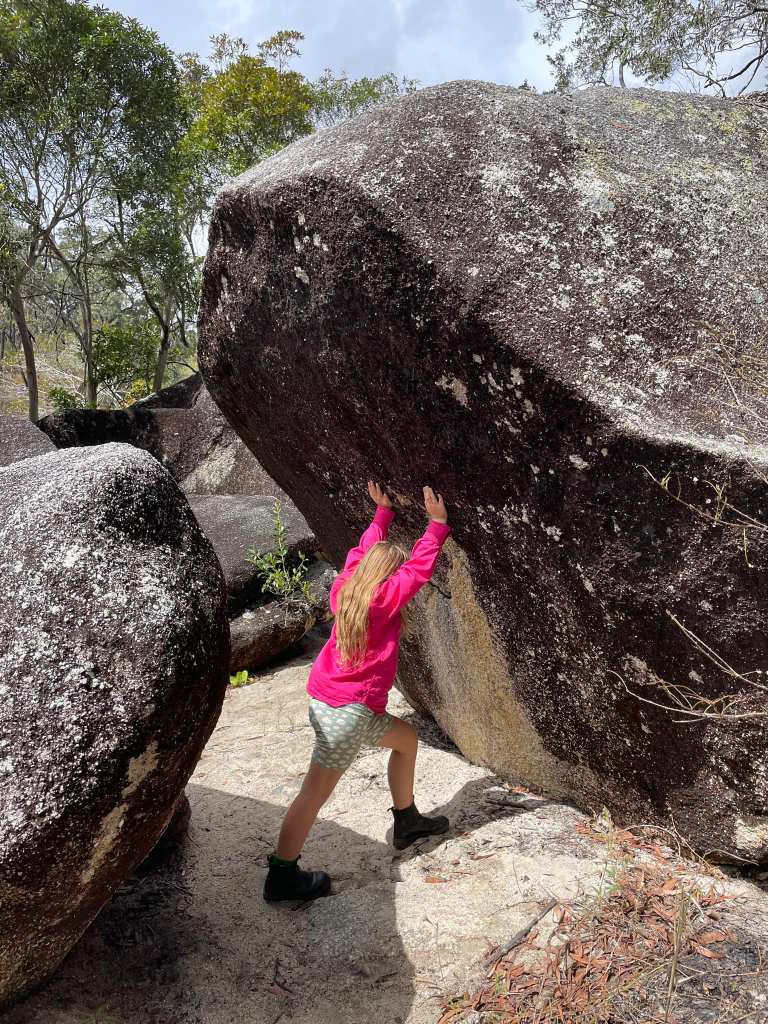 E: Undurra Lava tubes (Daddy & Emily adventure!), Innot Hot Springs, Yungaburra, Ringers Rest, CoffeeWorks (for the chocolate!), Zazen’s bath, water play in the caravan park at Port Douglas, seeing a Cassowary in the Daintree, Cairns and Mermaid braids, baby Will, Richmonds dinosaurs and finally ticking off two of her bucket list items – seeing the Big Gumboot and the Big Mango!